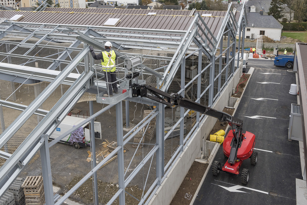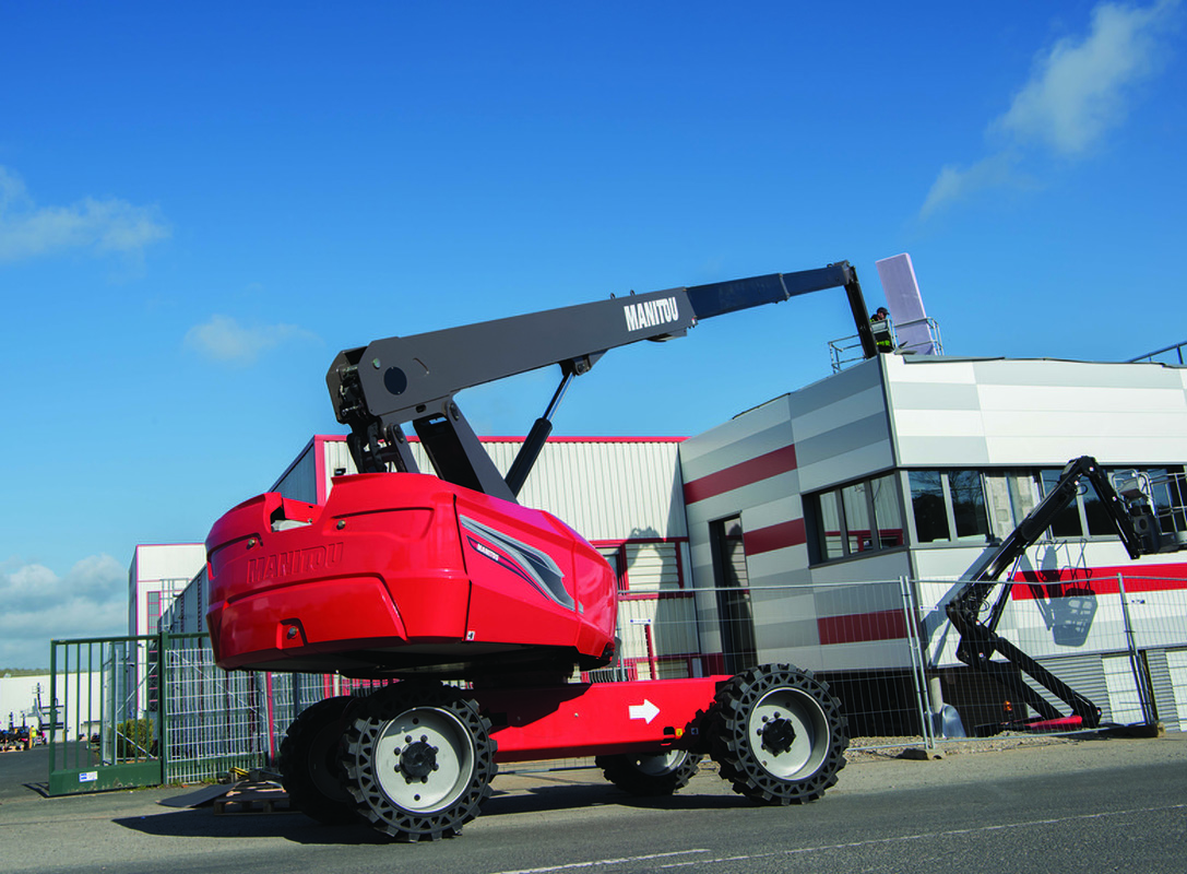 The mobile elevating work platform 220 TJ from Manitou offers a working height of 21.77 meters and a working outreach of 17.63 meters. The basket offers a capacity of 230 kg, to allow up to 2 operators to work on the platform, and is equiped with tool storage and a mesh floor to improve visibility during operations.