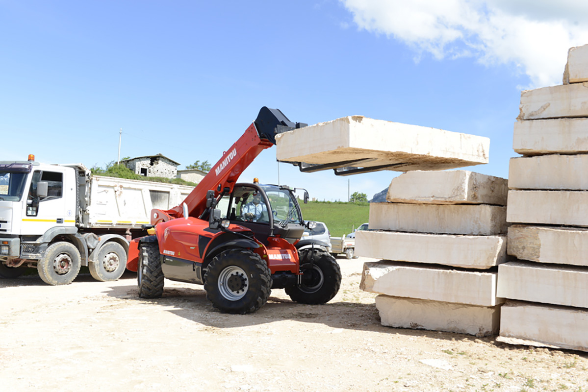 The MHT-X 790 Manitou telehandler is a heavy-duty machine built specially for heavy loads. With a 9 tonnes lifting capacity and 6.84 metres lifting height, this machine is able to handle heavy loads at great heights thanks to the easy JSM (Joystick Switch & Move) controls. No terrain is too tough for this Manitou telehandler – its 4-wheel drive, generous ground clearance, weight/power ratio and tractive force all work together for the machine to excel on any ground condition.