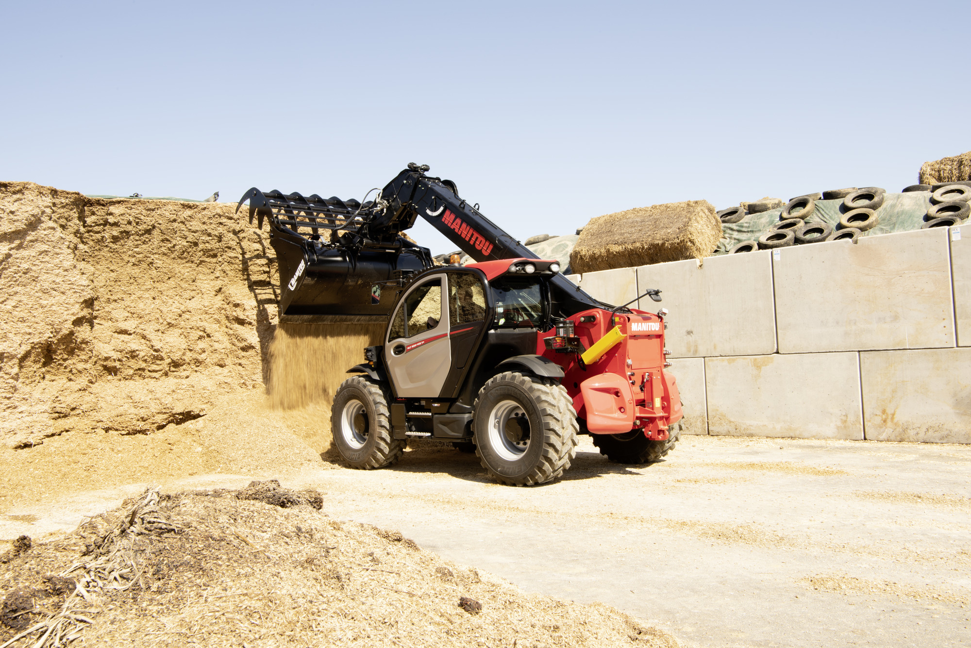 The numerous attachments available transform this telehandler into a truly multi-functional machine. Each attachment is specifically designed and tested for Manitou agricultural telehandlers. It is no longer just a simple bucket loader, you can tackle any handling task on the farm: feeding, straw/hay, manure, big bags, grain, cotton,…and boost your productivity.